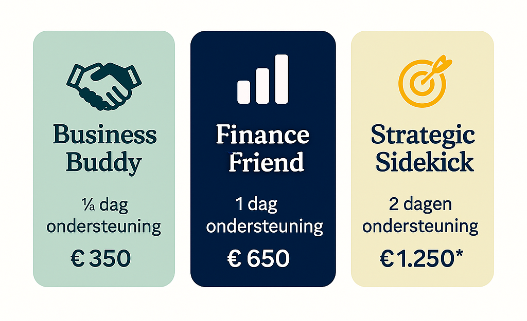 Een klankbord dat meedenkt over jouw volgende stap. Of het nu gaat over groei, structuur, pricing of focus, ik help je scherpstellen.
